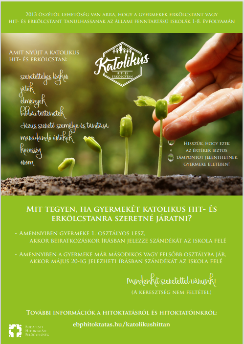 Önök, mint szülők nyilatkozhatnak arról, hogy kötelező tanórai foglalkozásként gyermekük számára az etika oktatást, vagy valamelyik, az Országgyűlés által elismert egyházak és azok belső egyházi jogi személye által folytatott hit- és erkölcstan oktatást választanak.